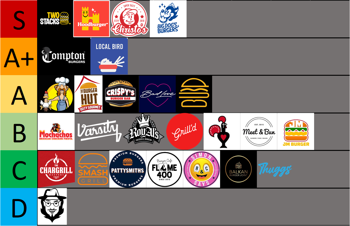 The Original Chicken Burger tier list created over primarily the 2023 to early 2024 period. If a spicy version option is available, it will more than likely be the option reviewed.S Tier
