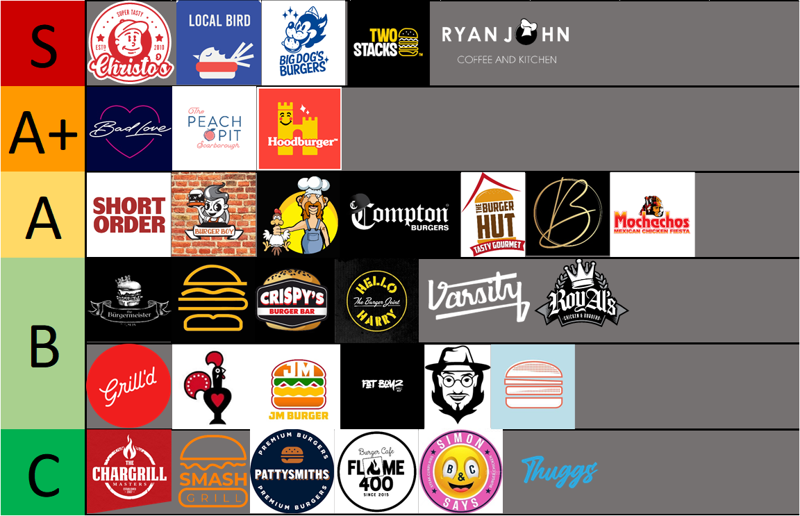 In recent years, the number of joints offering gourmet chicken burgers has exploded, but not all of them are created equally. This list attempts to group the chicken burgers of Perth into different tiers, with S the highest and D the lowest! This is the currently updated Chicken Burger tier list which improves upon the base the 2023-2024 version provided. If available, the spicy version of their chicken burger will be the item reviewed.S Tier