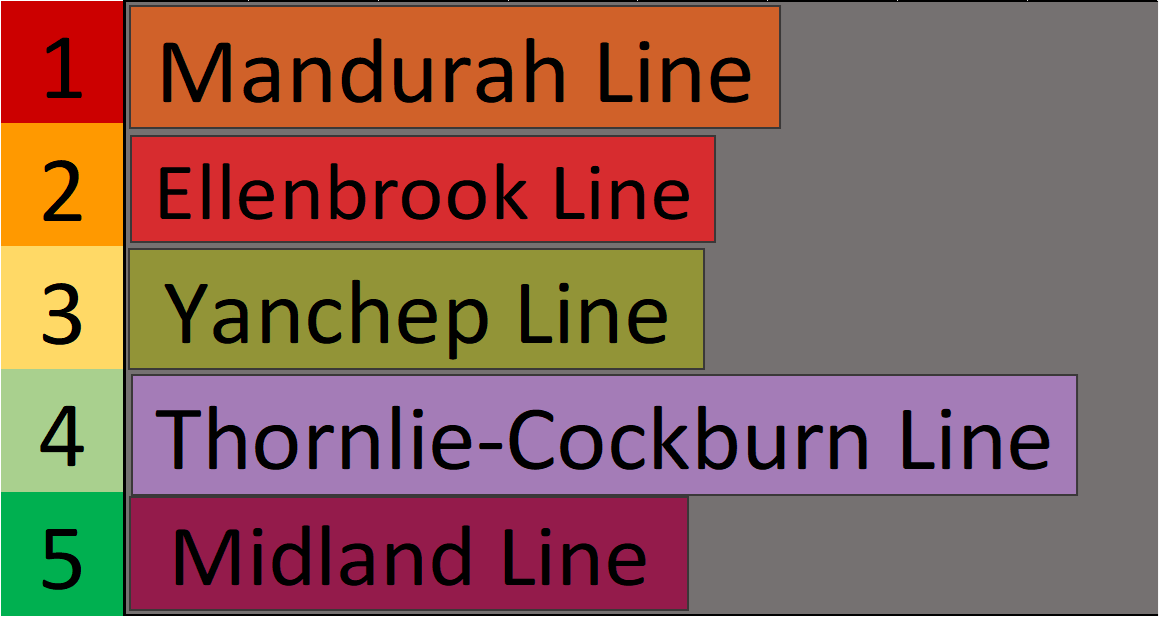 Thoughts: This was the easiest decision of my life, the Fremantle Line is the definition of painful public transportation. I'll start with the good attributes - it's the only line to feature stunning views of the Indian Ocean, Fremantle Station's heritage makes it feel like a tourist destination, and Subiaco Station being underground is neat. However, those are the line's only positive traits… There are way too many stations for the distance covered, you'll honestly probably spend a similar time at each station in total than you are actually moving. There's nothing even unique about most these stations either, with most being the typical flat stations found throughout the heritage lines. The views from along the line aren't thrilling either, primarily following a trench for the majority of its runtime. I really hope they do something to simplify this line one day!